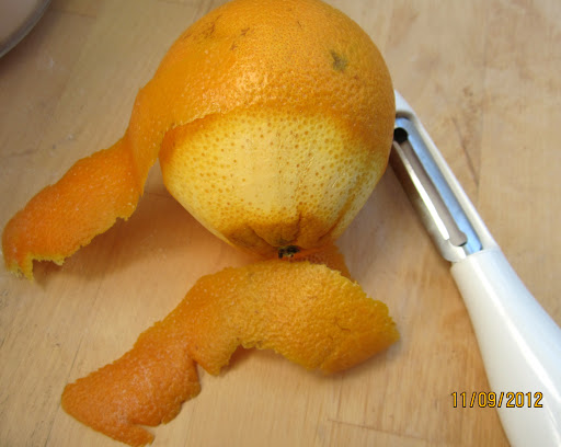 | Am einfachsten lässt sich Orangenschale mit einem Sparschäler in Streifen schneiden |