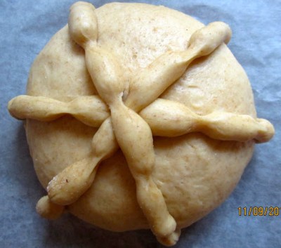 Dieses Totenbrot wird traditionell während der letzten Oktoberwochen gebacken, vor
