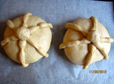 PAN DE MUERTO (2 Brote) (adaptiert von Fany Gerson’s Rezept in „Fine Cooking“)