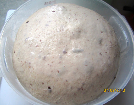| Über Nacht hat sich der Teig im Kühlschrank verdoppelt |