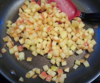 Gewürfelten Apfel in Butter in der Pfanne andünsten