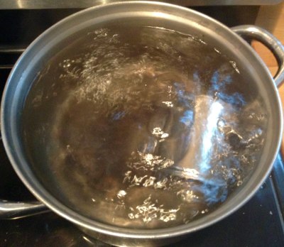 Bei mittlerer Hitze 3 Stunden lang kochen lassen, dabei öfters kontrollieren, ob die Dose auch noch völlig mit Wasser bedeckt ist – falls nötig, nachfüllen.