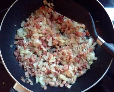 Schinken und Zwiebel andünsten