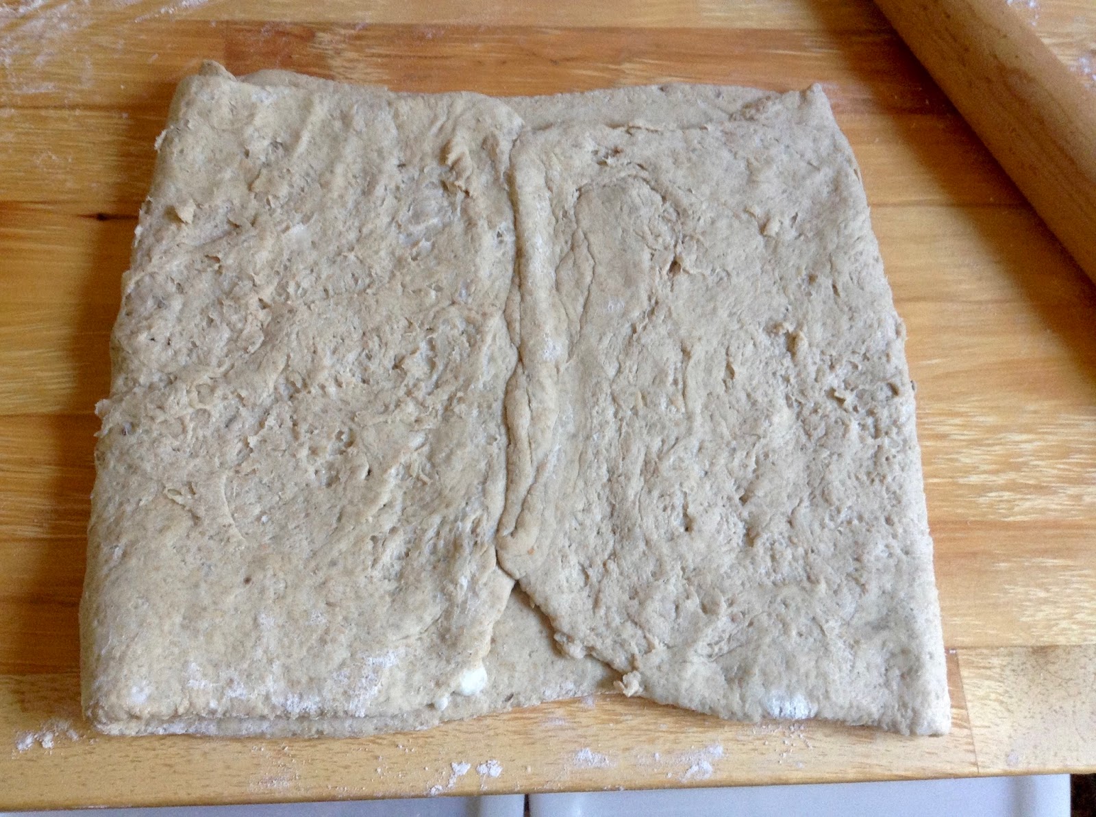 Teig wie bei der 1. Tour ausrollen und falten (ohne Fett).