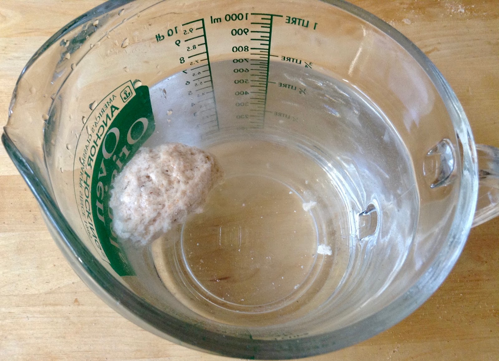 6:00 – 8:00 Uhr: Sauerteig mixen. Je nach Raumtemperatur und Aktivität, 4 – 8 Stunden oder so lange reifen lassen, bis der Schwimmtest positiv ausfällt (ein Löffel vom Starter soll im Wasser an die Oberfläche steigen).