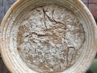 Teigling mit der Naht nach oben in den vorbereiteten Gärkorb legen. Oberfläche bemehlen. Gut zugedeckt über Nacht (12 – 16 Stunden) in den Kühlschrank stellen (kein Aufwärmen nötig!)