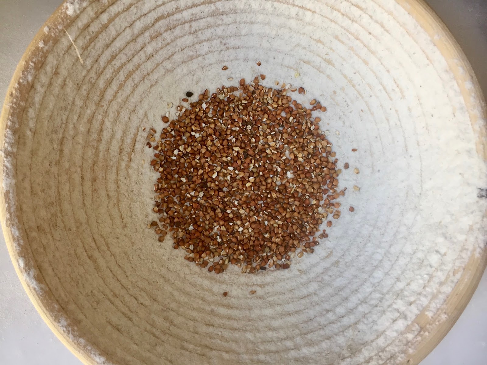 Buchweizenkörner oder Urgetreideflocken zum Ausstreuen des Gärkörbchens