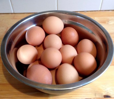 Als ich in in die USA übersiedelte, wunderte ich mich, dass in amerikanischen Rezepten immer von grossen, „large“ Eiern die Rede ist, während das typische deutsche Rezept-Ei „Gewichtsklasse M“ entspricht (mittelgross).