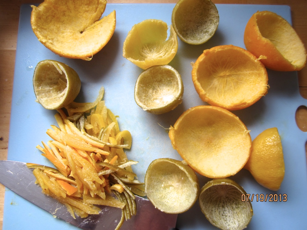 Ich hatte mich schon früher einmal an der Marmalade-Produktion versucht, aber das übliche Verfahren, die Apfelsinen erst zu schälen und dann penibel von der zähen, weißen Haut darunter zu befreien, hatte sich als äusserst mühsam und zeitraubend erwiesen.