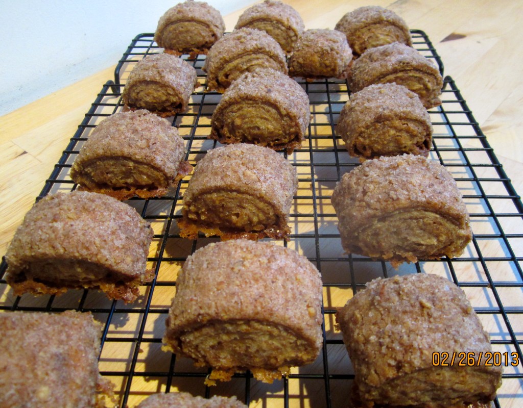 Ganz hervorragende Kekse – mit Walnüssen – sind die Rugelach meiner Lieblingsbäckerei in Portland, Standard Baking Company. Jüdische Einwanderer aus Polen haben das kleine Gebäck mit nach Amerika gebracht. (Das jiddische Wort „Rugelach“ bedeutet: kleine Spirale.)