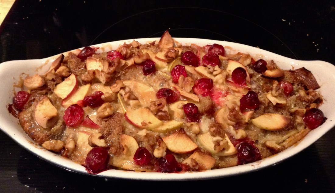 Da wir nach Auszug der Kinder nur noch zu zweit sind, backe ich überwiegend Kuchen im Kleinformat und gebe davon noch die Hälfte unseren netten Nachbarn, weil ich lieber öfter etwas Neues backe, als tagelang von gleichen Gebäck zu zehren. Gebäckreste (hier altbackene Zimtschnecken) lassen sich wunderbar recyceln Trotzdem bleiben manchmal Reste übrig, und wer … Weiterlesen GENIALER KUCHENRESTE-AUFLAUF MIT FRÜCHTEN & NÜSSEN